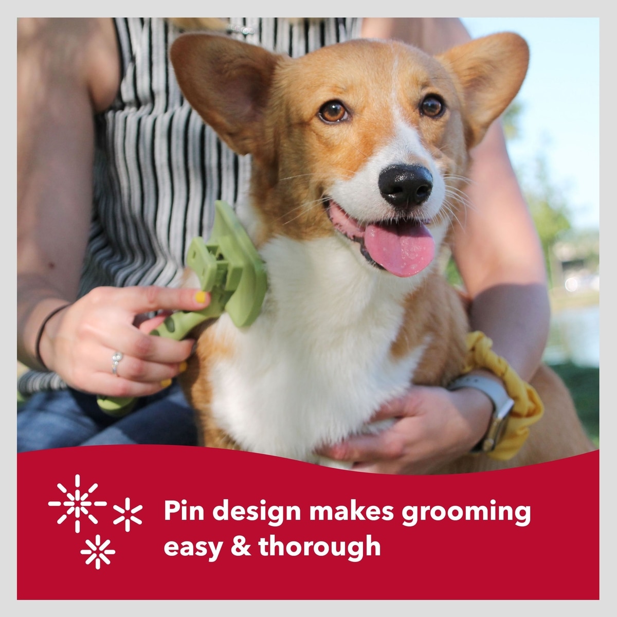 This brush has gentle, stainless steel pins that will ensure that your pup gets properly groomed without irritating her skin.