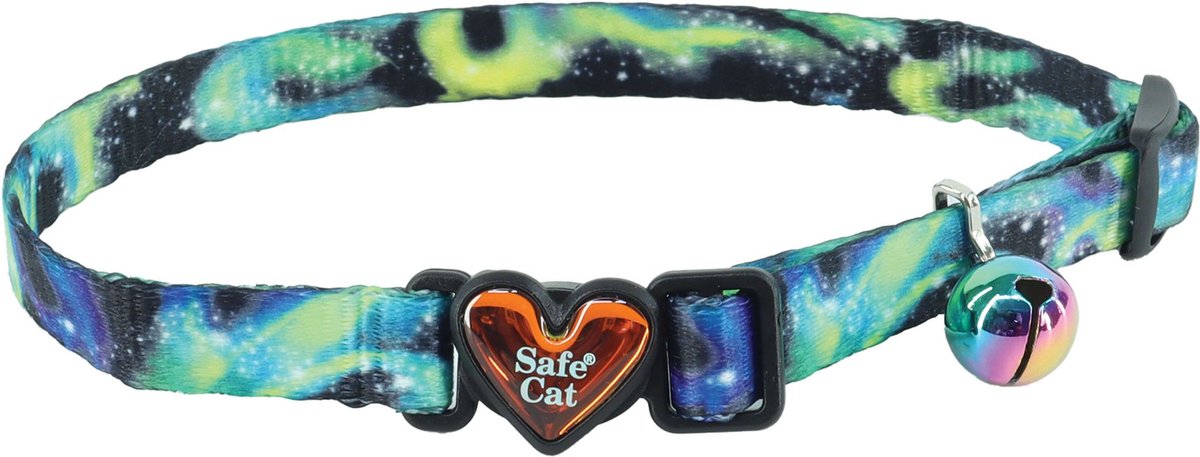 Safe Cat Heartbreaker Adjustable Breakaway Heart Buckle Cat Collar, 8 to 12-in neck, 3/8-in wide, Galaxy Nirvana