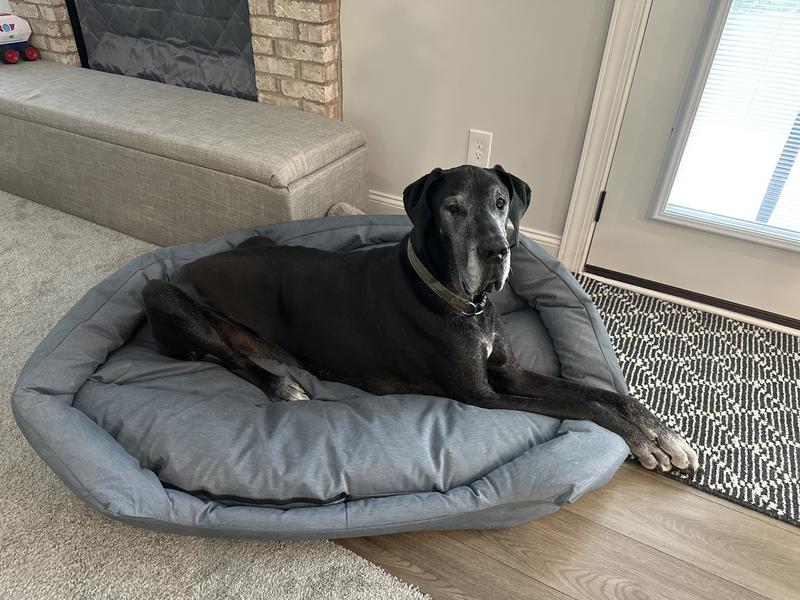 My 9.5 year old Great Dane LOVES this bed. Comfy and makes him feel secure with the cozy edge!