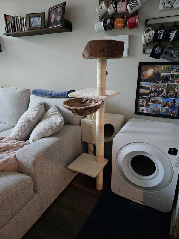 Searching for a specific measurement that could fit between my couch and the automatic cat box, this tower hit the mark. You can also build it up differently from the picture if the space is tighter. It's perfect for my two cats to play and relax when they want to.