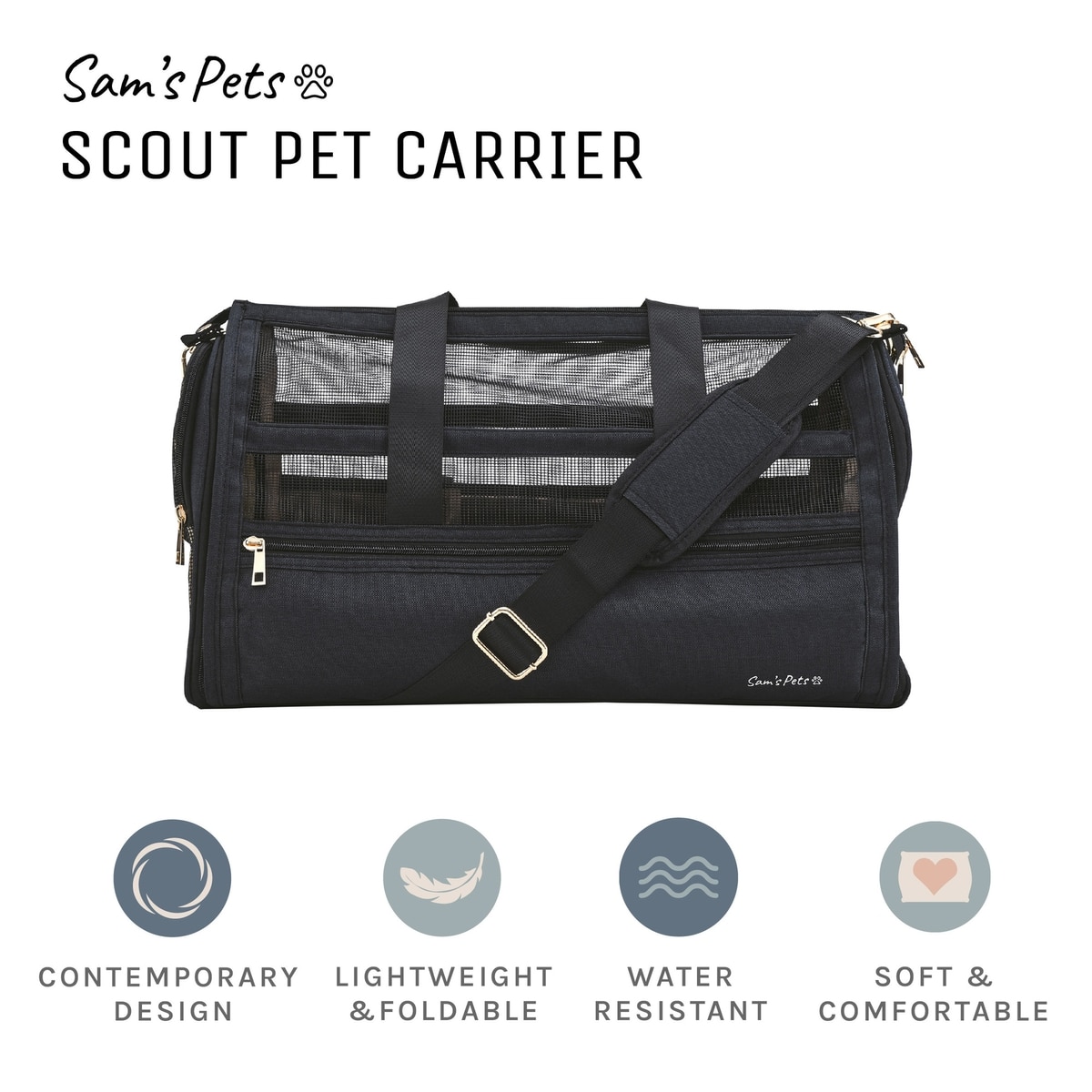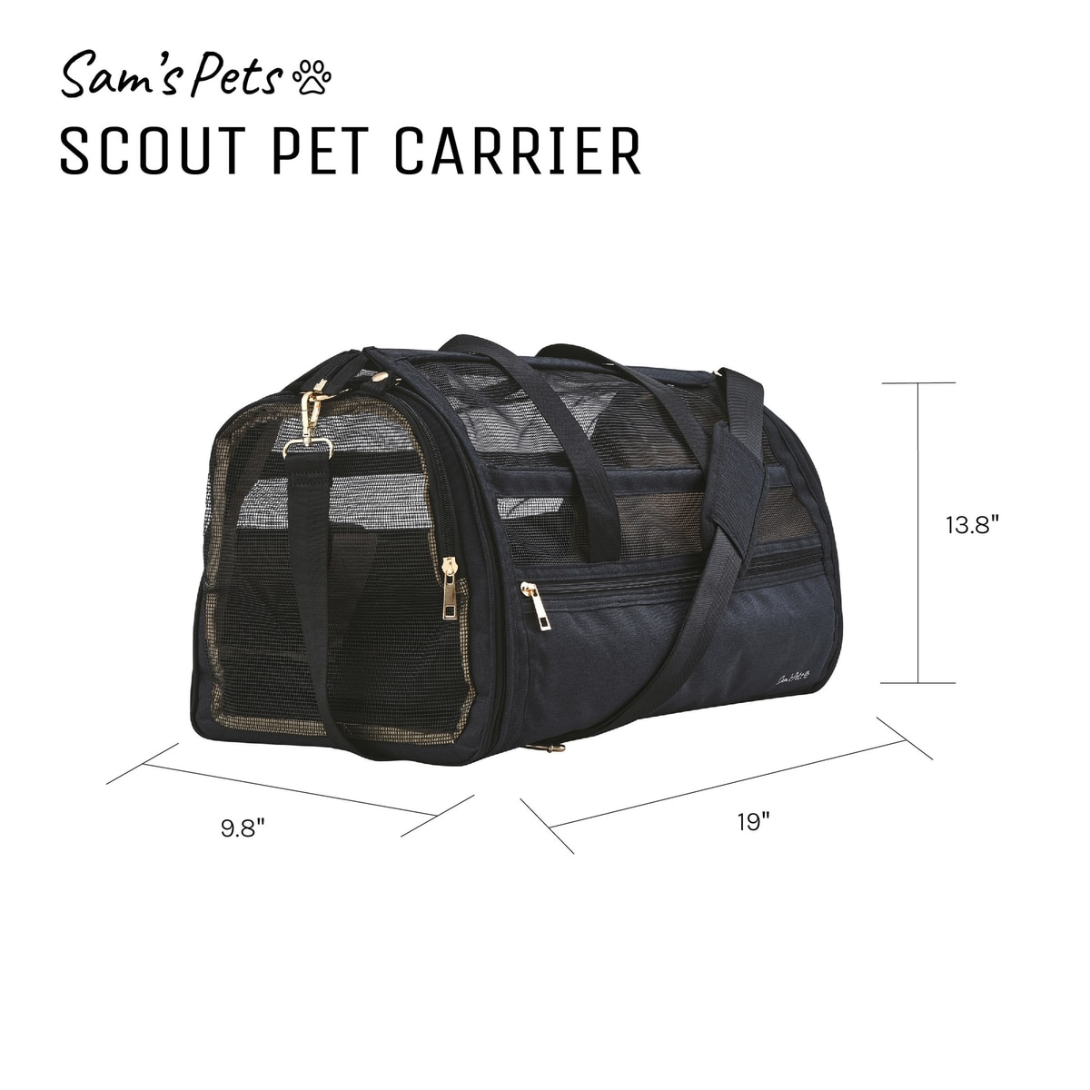 Sam's Pets Scout Dog & Cat Carrier Bag, Black, 19-in