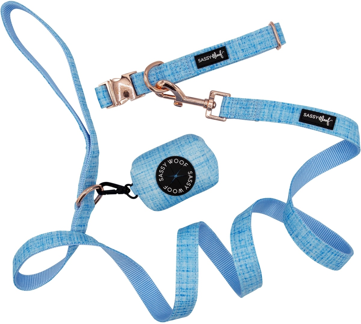 Sassy Woof Dog Waste Bag Holder, Collar, & Leash, 3 count, Blue, Small
