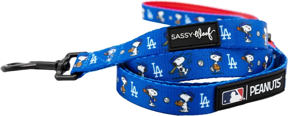 Sassy Woof MLB x Peanuts Los Angeles Dodgers Dog Leash, 5-ft long, 3/4-in wide
