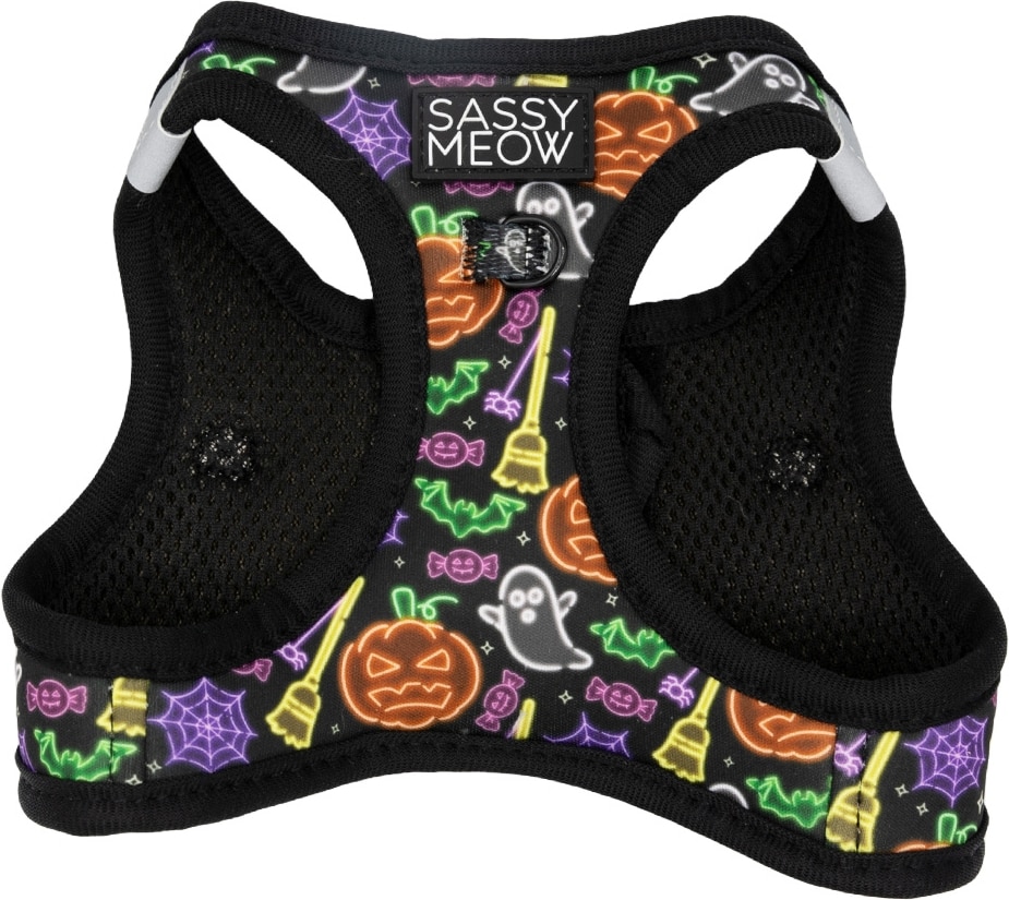 Sassy Woof Neon Frights Step-In Cat Harness, Black, X-Small: 12 to 14.5-in chest