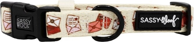 Sassy Woof P.S. I Woof You Dog Collar, Beige, Medium: 19.7-in neck, 3/4-in wide