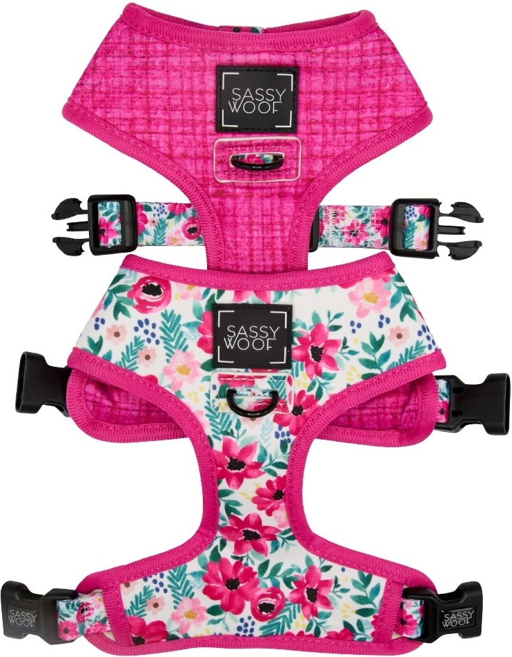 Sassy Woof Reversible Dog Harness, Floral Frenzy, Pink, Large