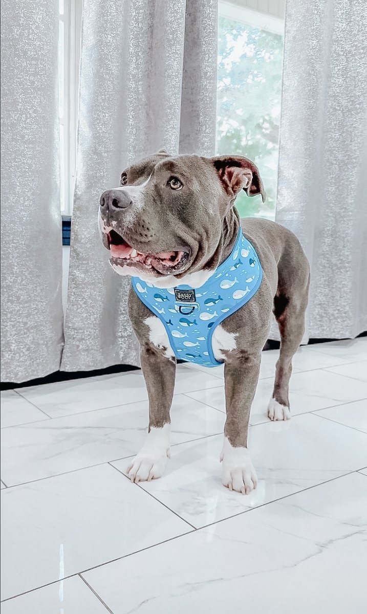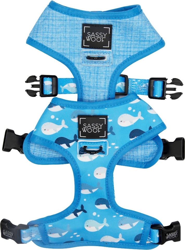Sassy Woof Reversible Dog Harness, Might as Whale, Blue, Large
