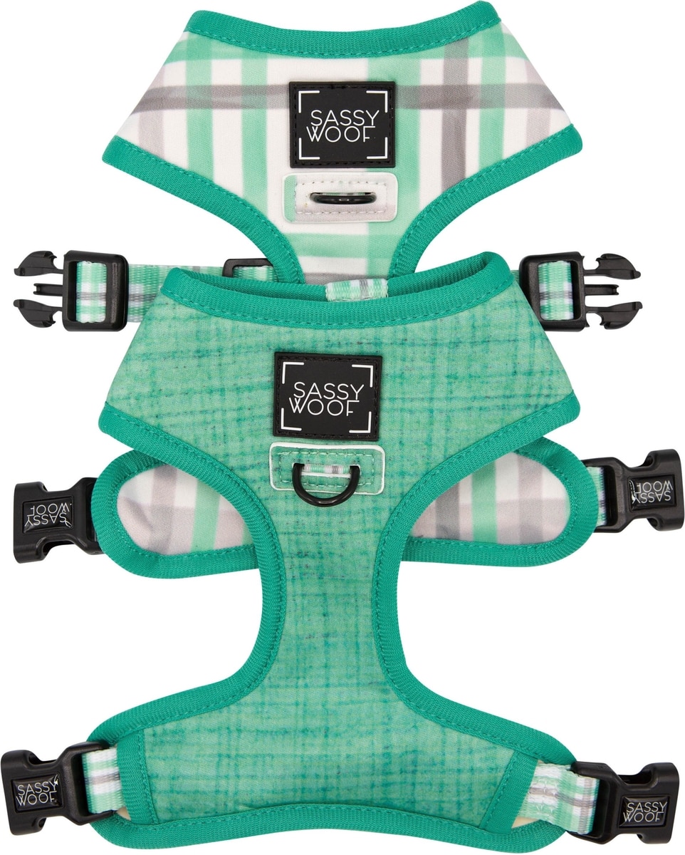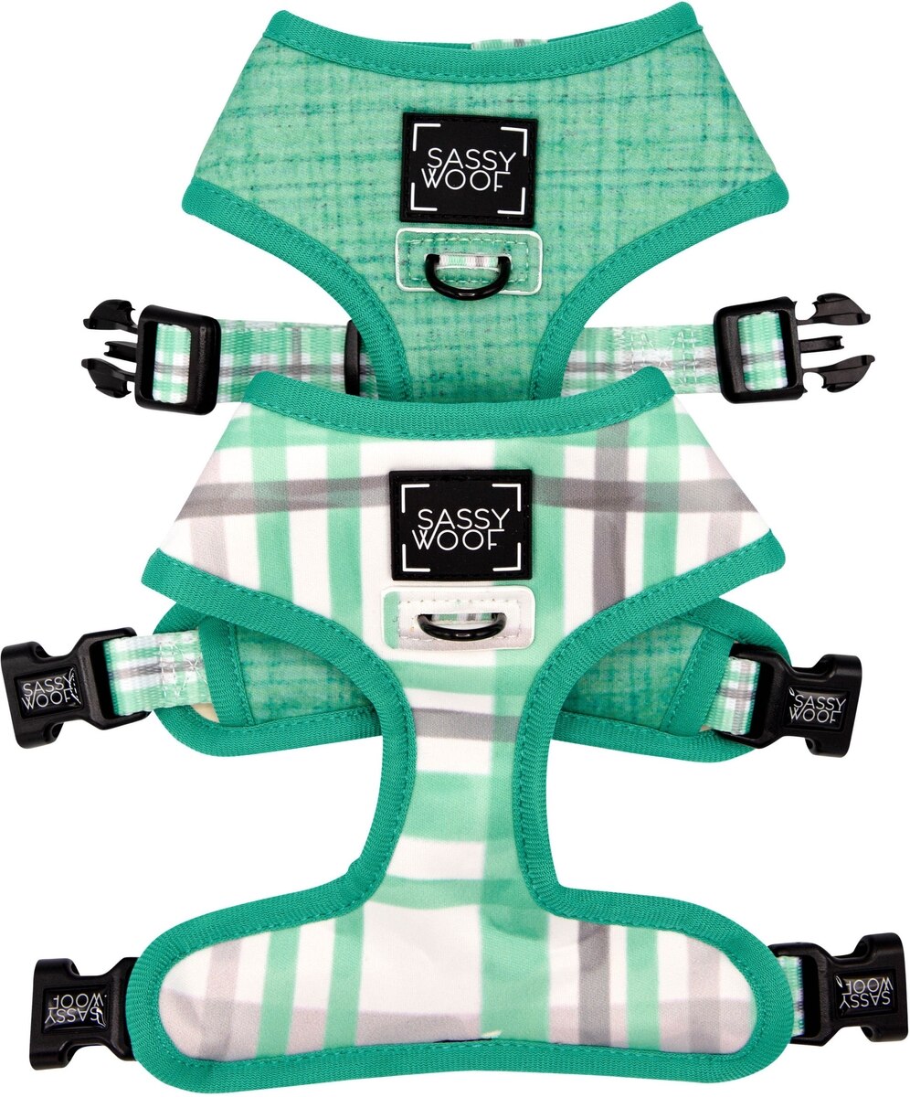 Sassy Woof Reversible Wag Your Teal Dog Harness, Teal, X-Small
