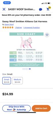 ![]() Sassy Woof Smitten Kittens Cat Harness, SmallSassy Woof Smitten Kittens Cat Harness, Small$24.99 Chewy Price$24.99 Rated 4.9 out of 5 stars 4.9 | |||||||||||