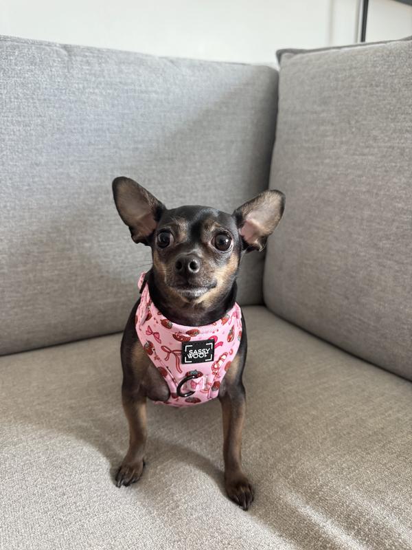 This is the best harness for a tiny dog! Adjustable in all the right places to ensure a great fit! aside from the fit, this print looks amazing on her!