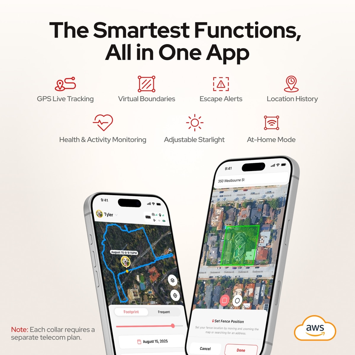 • GPS live tracking allows you to keep an eye on your pet’s whereabouts at all times.