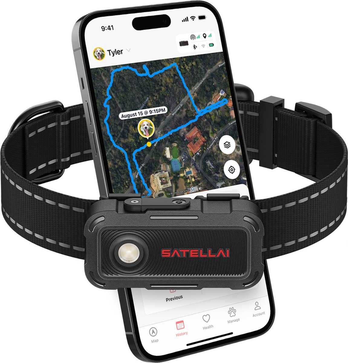 SATELLAI Go Smart GPS Dog Collar with Live Tracking & Health Monitoring, Carbon Black, Medium