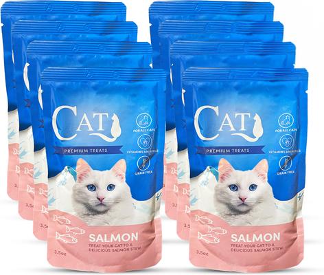 Scoochie Pet Premium Gravy Salmon Stew Wet Cat Food Topping, 3.5-oz pouch, case of 8