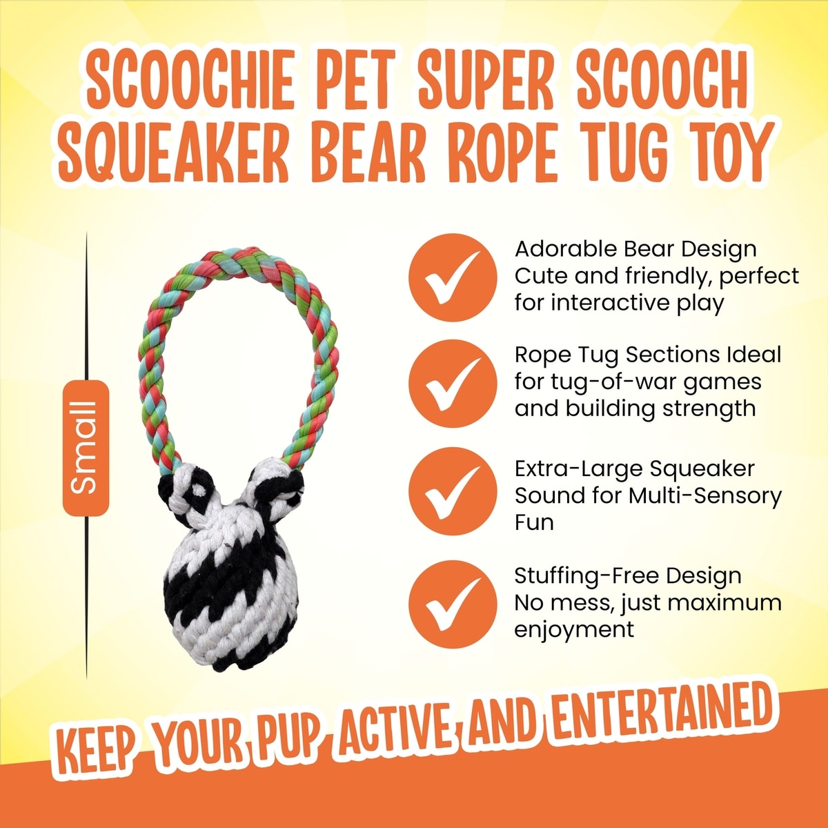 Scoochie Pet Super Scooch Squeaker Bear Rope Dog Tug Toy, Small