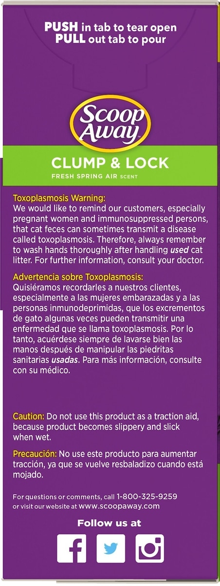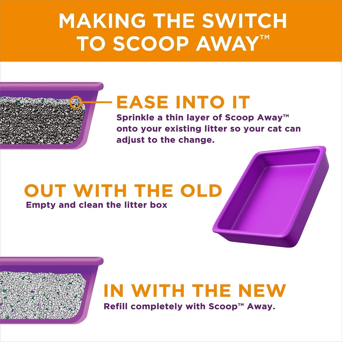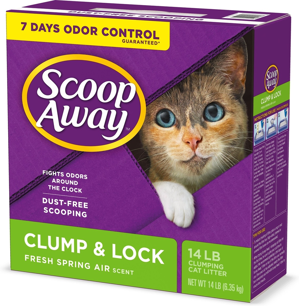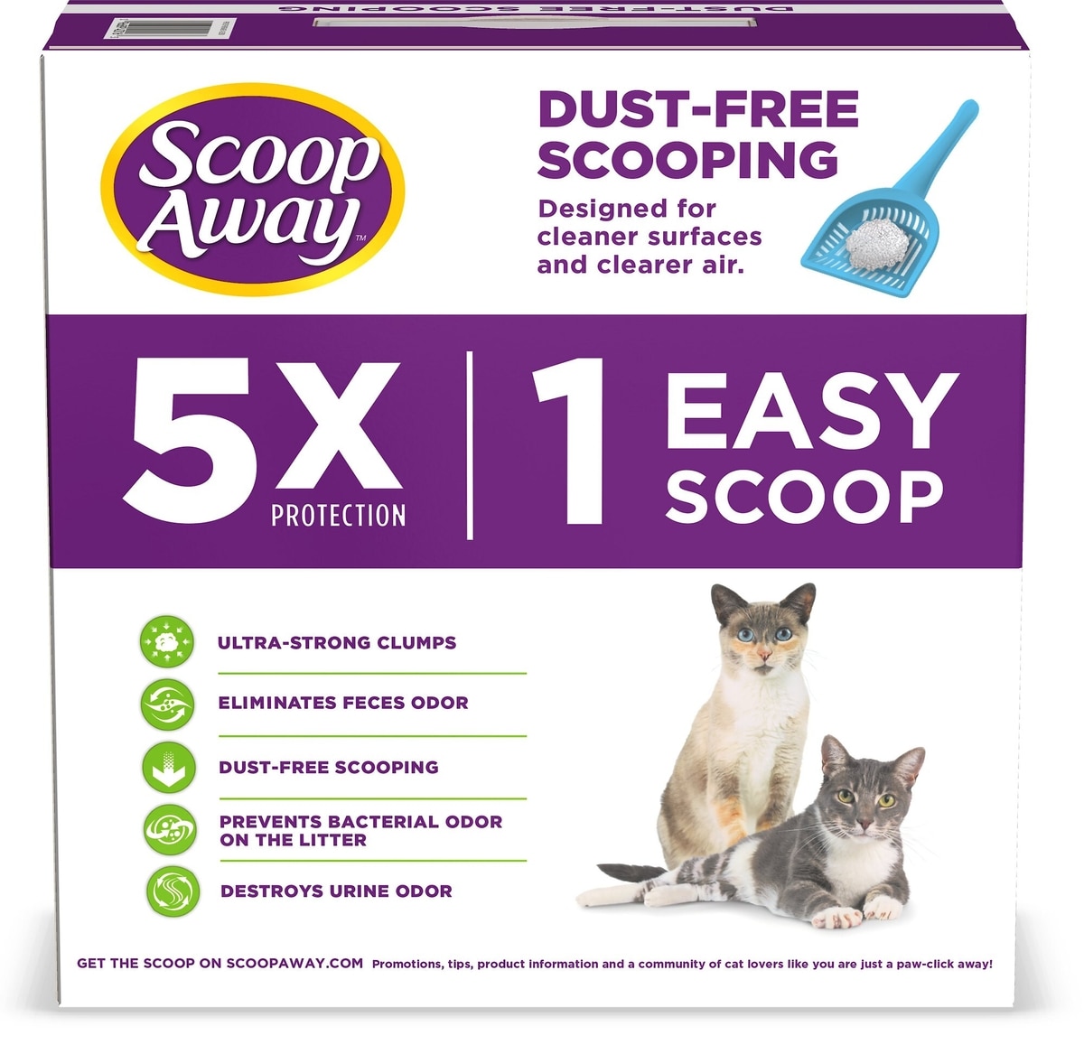 The Scoop Away Super Clump Scented Cat Litter forms tight clumps that won't crumble, for easy scooping, and leaves behind a fresh scent. Scoop Away Complete Performance Scented Scoopable Cat Litter is formulated for multiple cats and is a low-dust litter that uses two plant extracts for 10-day odor control.