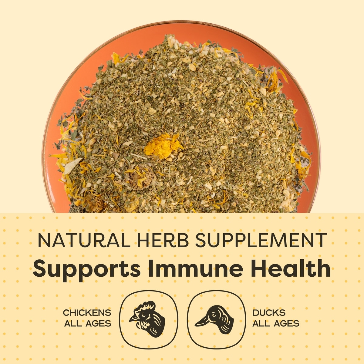 Scratch and Peck Feed Cluckin' Good Organic Herbs Chicken Supplement, 10-oz bag—Spruce up your flock’s feed with Scratch and Peck Feed Cluckin' Good Organic Herbs Chicken Supplements. These delicious organic herb supplements for chickens are formulated to support digestive and circulatory health. They are developed to act as a laying stimulant with antibiotic properties that can help deepen egg yolk color and improve respiratory health. These herb supplements contain garlic, ginger, parsley, thyme, basil, oregano, nettle and calendula that are certified organic by the USDA and verified by the Non-GMO Project. They do not contain artificial scents, colors or preservatives.