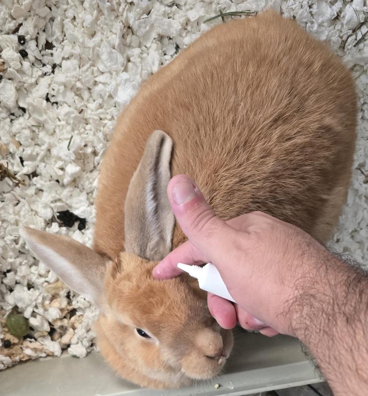- Easy to use—simply apply a continuous bead of cream from your bunny’s ears to their nape without rubbing.