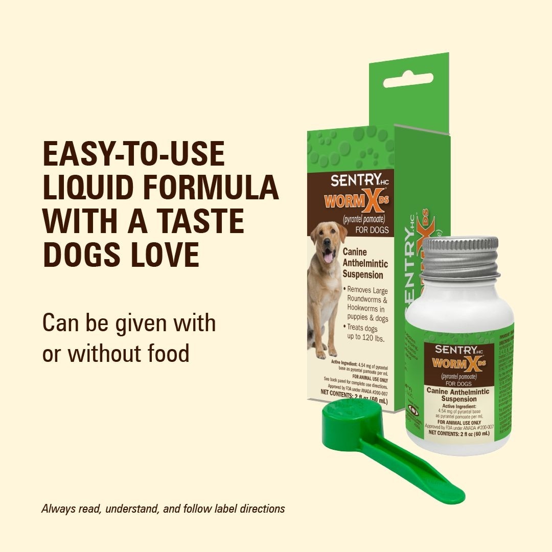 Sentry HC WormX DS Dewormer for Hookworms & Roundworms for Dogs, 2-fl oz bottle