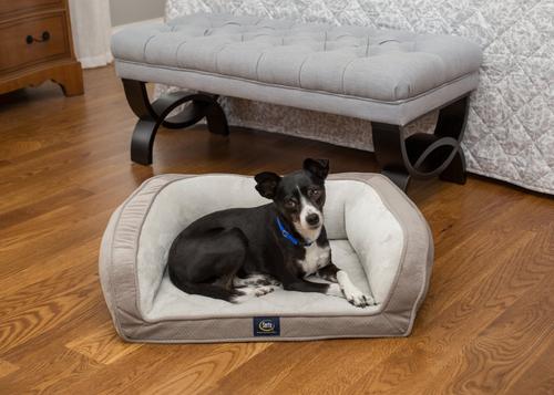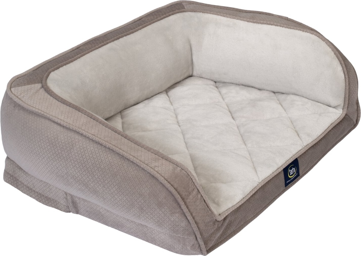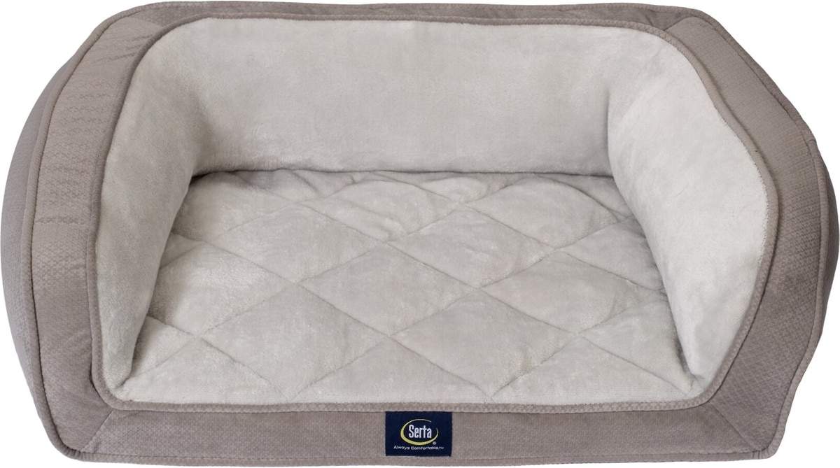 Serta Quilted Orthopedic Bolster Dog Bed with Removable Cover, Gray, Petite