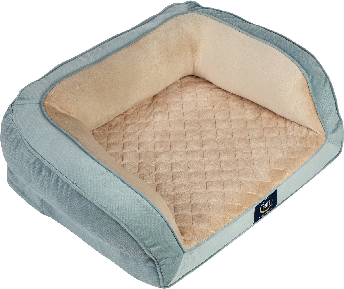 Serta Quilted Orthopedic Bolster Dog Bed with Removable Cover, Blue, Petite