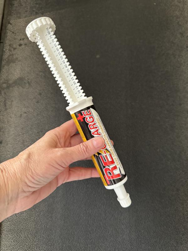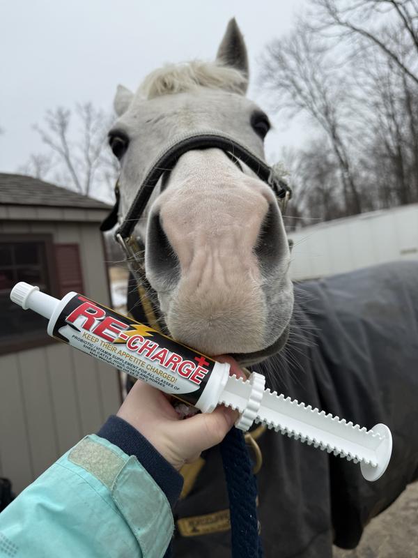 This is a really good product for my horse! We occasionally travel away from his boarding farm to go to horse shows, and the travel and new location can make him a little nervous. Sometimes he will refuse to eat or not eat all of his food. The SFI Recharge paste has been super helpful for these situations, his appetite has been much better when we are traveling.. He was not a huge fan of the flavor, but did allow me to administer this prior to feeding time, it works just like any other "tube" type supplement! It will last us a while, since he only needs 15mL per use. Overall, I definitely suggest trying this out for your horse.