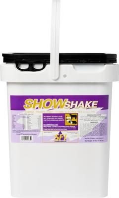 I began using the SFI Show shake on my purebred lamancha dairy goat herd. I have a yearling buck I wanted to help fill out, and see if it helped my does in milk. I used it both as powder feed topper and in water. It was a big hit! The Show shake has helped boost the buck's appetite, and he's gained some weight. He has more energy and is tolerating the cold better. The doe in milk I gave it too increased her milk output, and she also has a better appetite in the cold. I will be making this a regular supplement around here. Very pleased. It has a pleasant vanilla scent, the goats like the flavor of it. In both powder on feed or in water, they consume it easily.