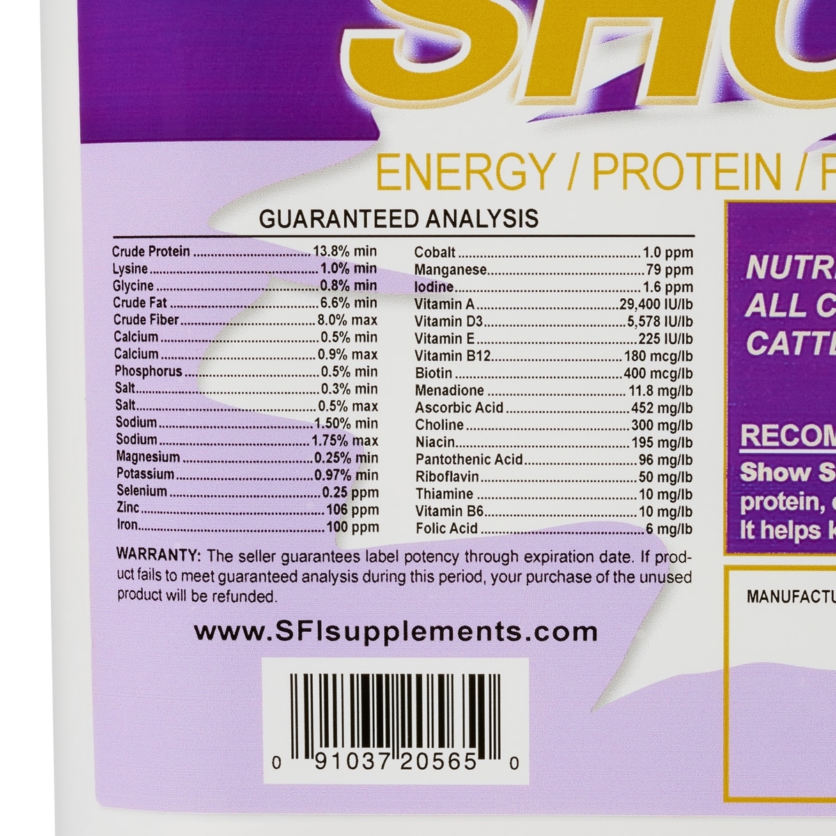 - This supplement provides a concentrated source of energy, protein, electrolytes, and vitamins for show animals during times of stress.