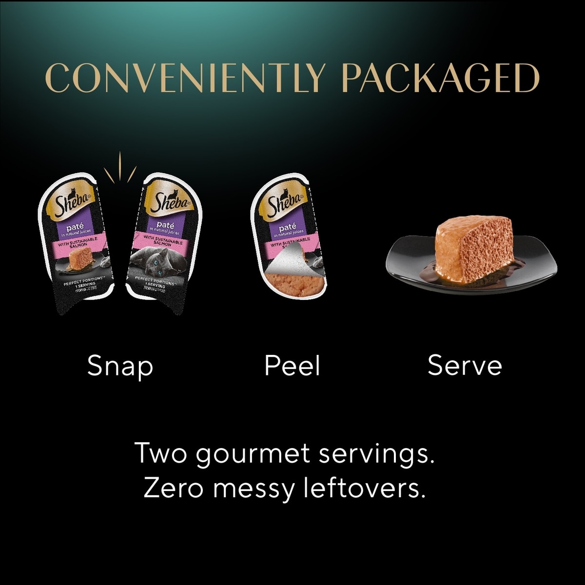 A Fresh Meal With Every Peel Your feline loves the finer things, and dinner is one of them. These easy-to-serve twin packs ensure two gourmet servings at every meal with zero messy leftovers. Just snap, peel, and serve Sheba Perfect Portions.