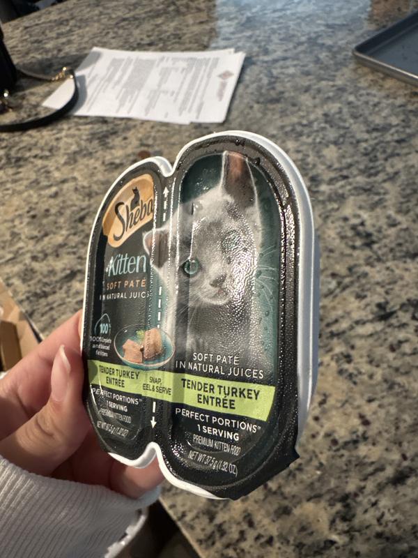Formulated for Specific Life Stages Sheba comes in easy-to-chew pate formulas made for specific life stages. Try Sheba Perfect Portions Kitten Wet Cat Food, enriched with nutrients to help support your growing kitten, or Sheba Perfect Portions Pate in beef, poultry, or fish flavors.