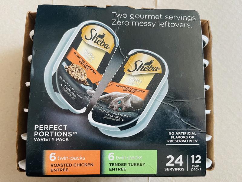 - DealSheba Perfect Portions Poultry Entrees Pate Variety Pack Adult Wet Cat Food Trays, 2.6-oz, case of 12$12.57 Chewy Price$15.99 List Price$11.94 Autoship PricePromo, Spend $100, Get $30 eGift Card with code NEWYEAR +1 deal
