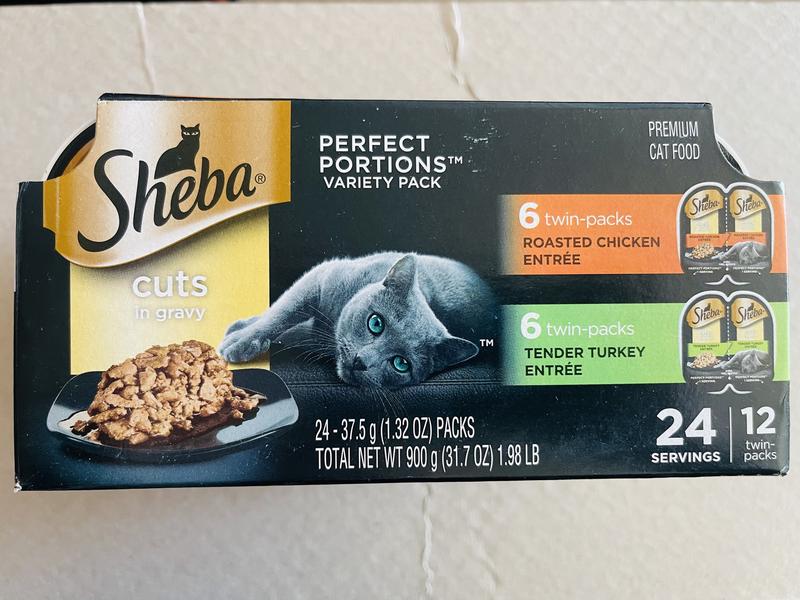 - Sheba Perfect Portions Grain-Free Gourmet Salmon, Sustainable Tuna & Delicate Whitefish & Tuna Cuts in Gravy Variety Pack Adult Wet Cat Food Trays, 2.6-oz, case of 24$22.43 Chewy Price$25.98 List Price$21.31 Autoship PricePromo, New Customers Only: Spend $49+, Get $20 eGift Card