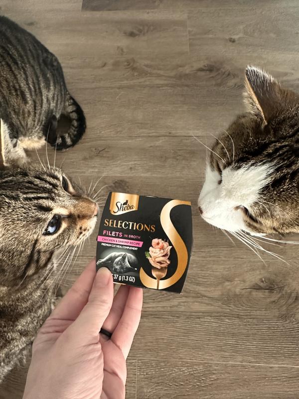 - Sheba Selections Filets in Broth Chicken & Tuna Recipe Grain-Free Cat Meal Complement, 1.3-oz tray, case of 12$21.36 Chewy Price$23.76 List Price$20.29 Autoship PricePromo, New Customers Only: Spend $49+, Get $20 eGift Card