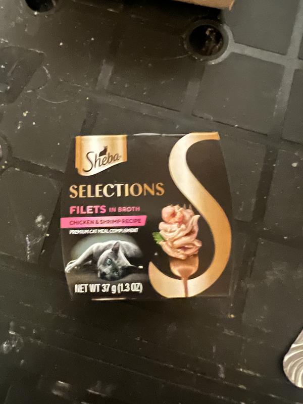 Sheba Selections Filets in Broth Chicken & Shrimp Recipe Grain-Free Cat Meal Complement, 1.3-oz tray, case of 12