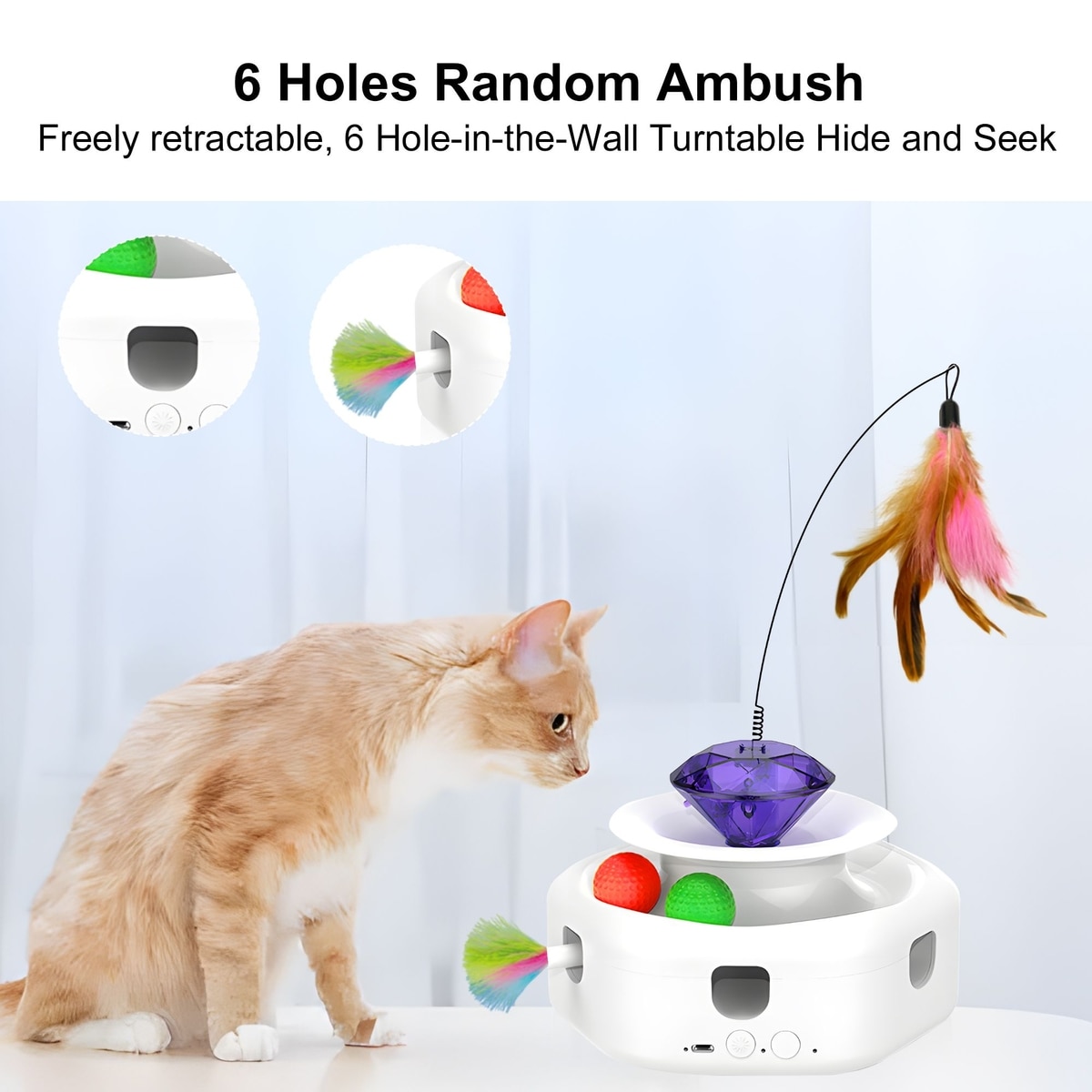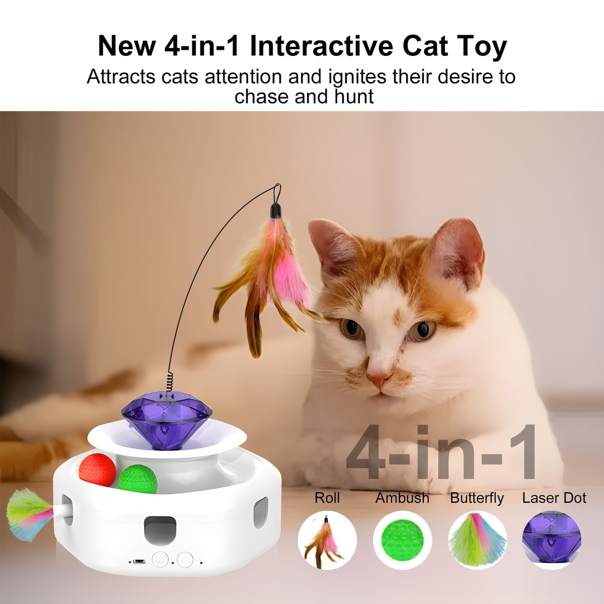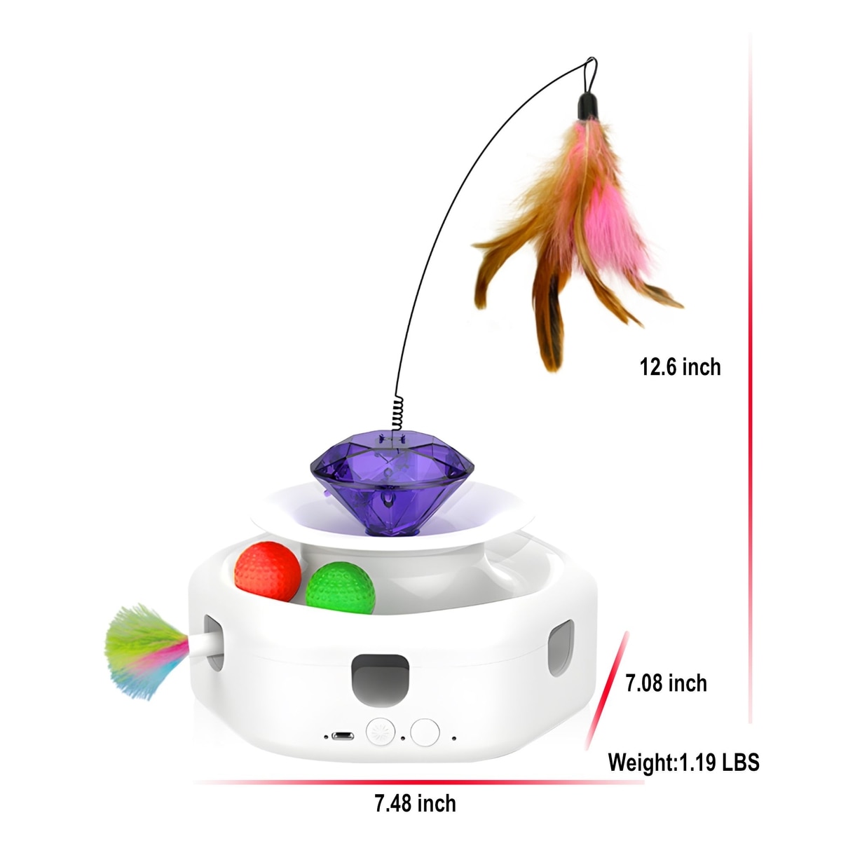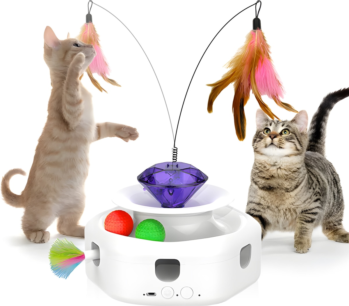 Shele Play Purrfect 4 in 1 Interactive Rotating Wand Cat Toy, White, Small