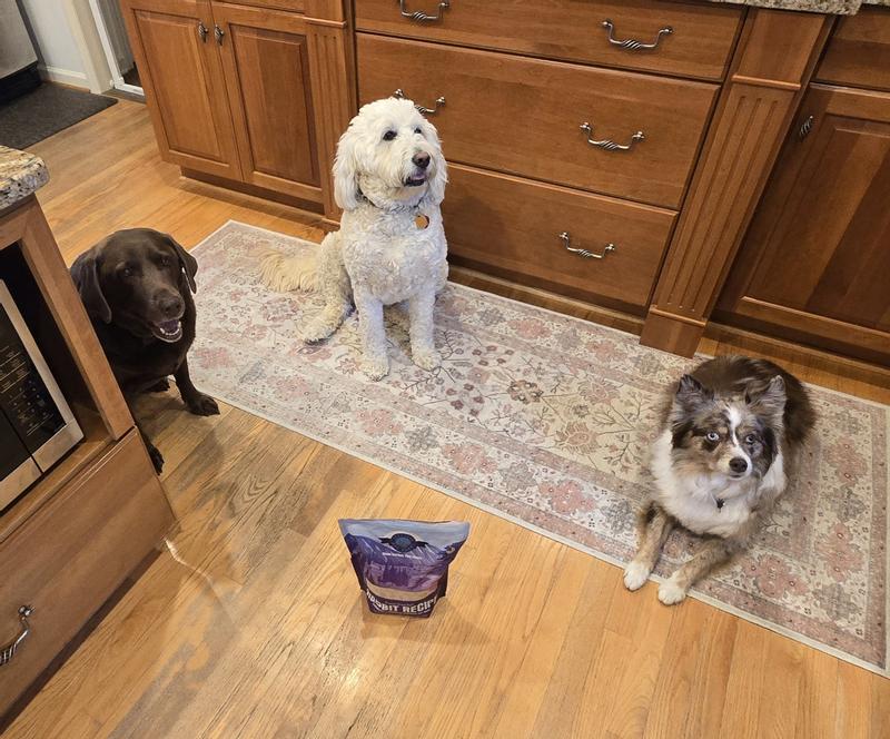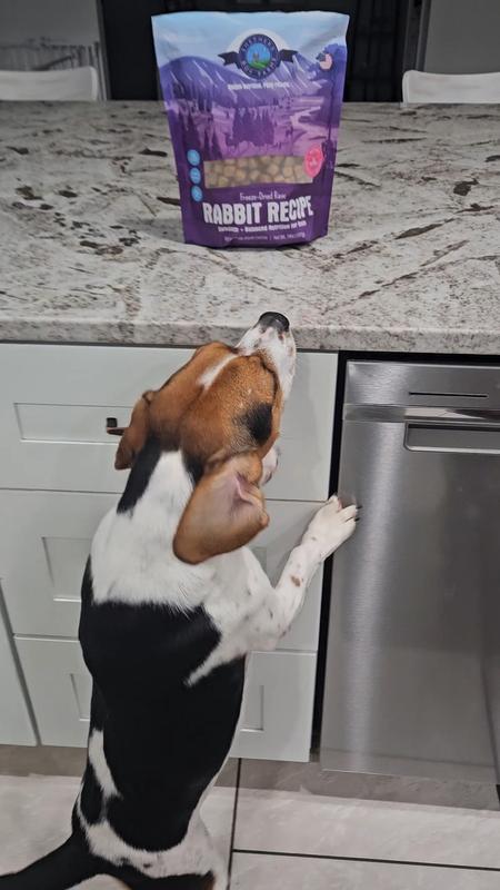 Fed the Freeze-Dried Raw Rabbit Recipe (FDRRR) as treats, then as a topper. Dogs ate the FDRRR before the kibble every time. Dogs: Aussie, Lab and Doodle.