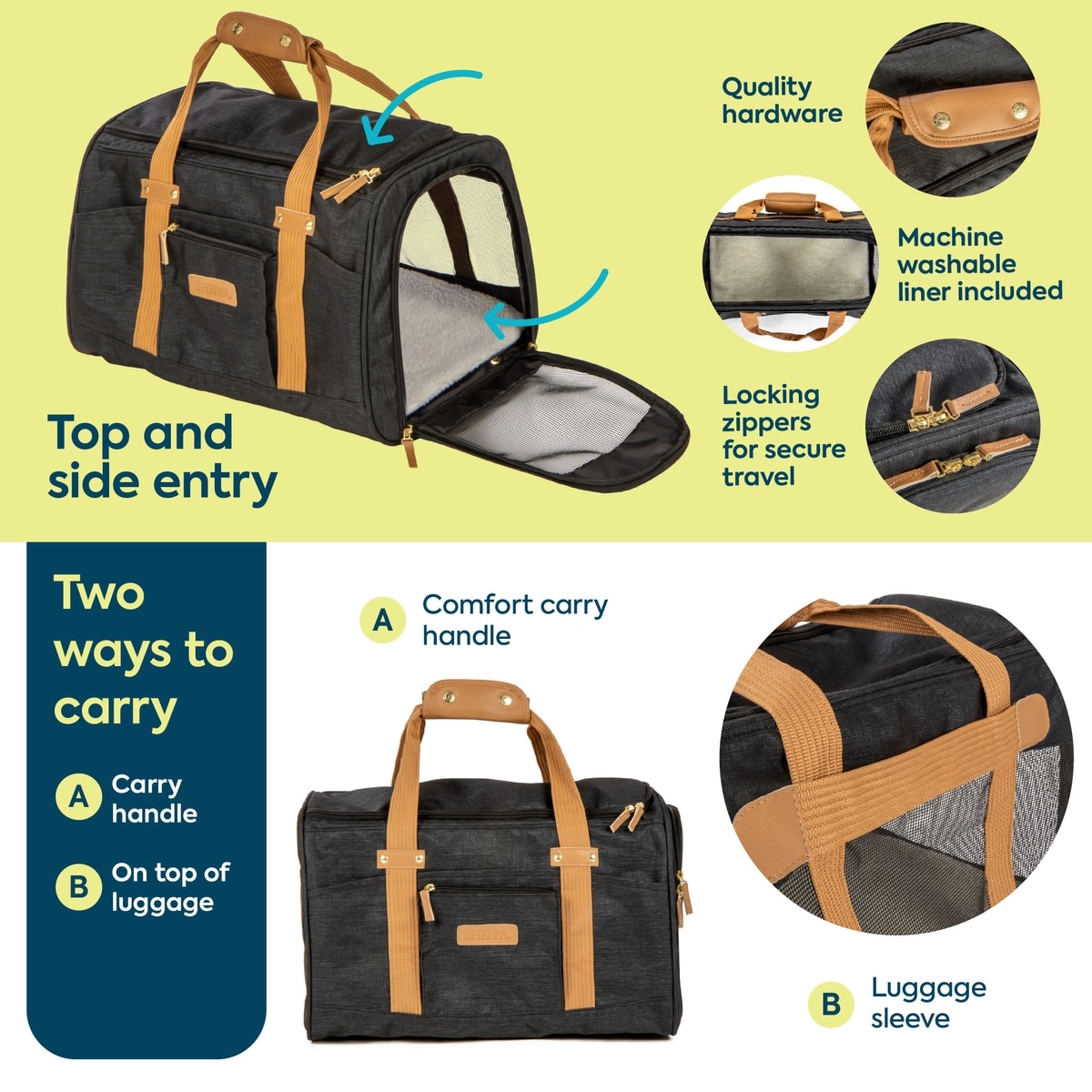 The Original Deluxe Pet Carrier is an airline-approved carrier that lets your pet travel comfortably whether you are on the go, in your car, or taking a walk. It is easy to use and durable enough to keep your pet contained and protected.