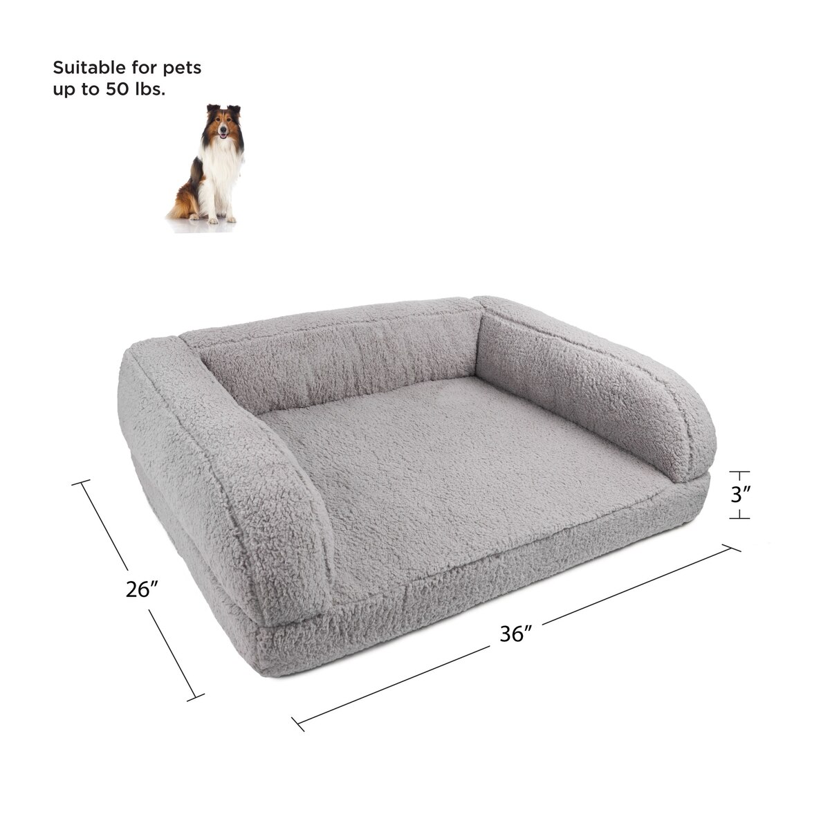 Sherry Kline Pet Collection Sherpa Couch Dog Bed, Grey, 26 x 36 x 8-in