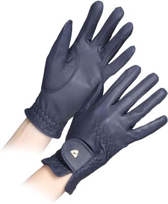 Shires Equestrian Products Aubrion Leather Ladies Horse Riding Gloves, Navy, Large