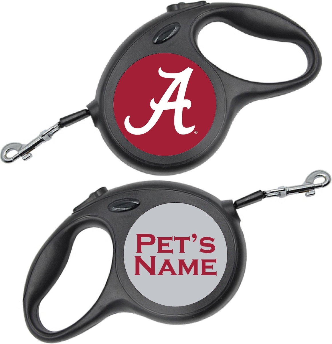 ShopInstaPets Alabama Crimson Tide Retractable Dog Walking Leash, Black, 16-ft long, 1/2-in wide
