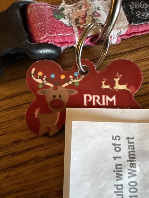 ShopInstaPets Christmas Reindeer 2 Sided Customized Dog ID Tag, Red