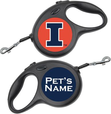 ShopInstaPets Illinois Fighting Illini Retractable Dog Walking Leash, Black, 16-ft long, 1/2-in wide