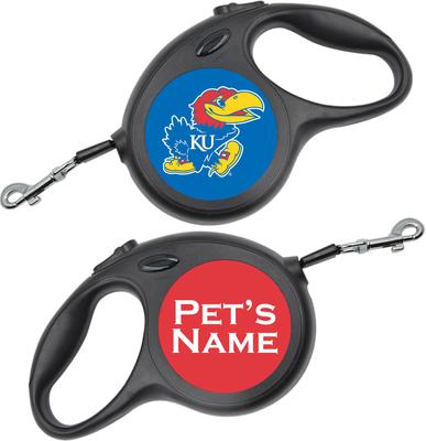 ShopInstaPets Kansas Jayhawks Retractable Dog Walking Leash, Black, 16-ft long, 1/2-in wide