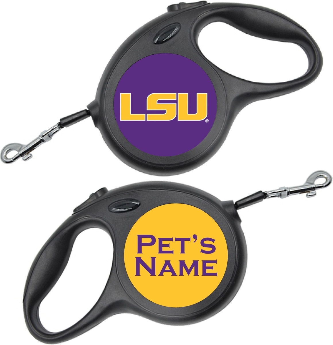 ShopInstaPets LSU Tigers Retractable Dog Walking Leash, Black, 16-ft long, 1/2-in wide