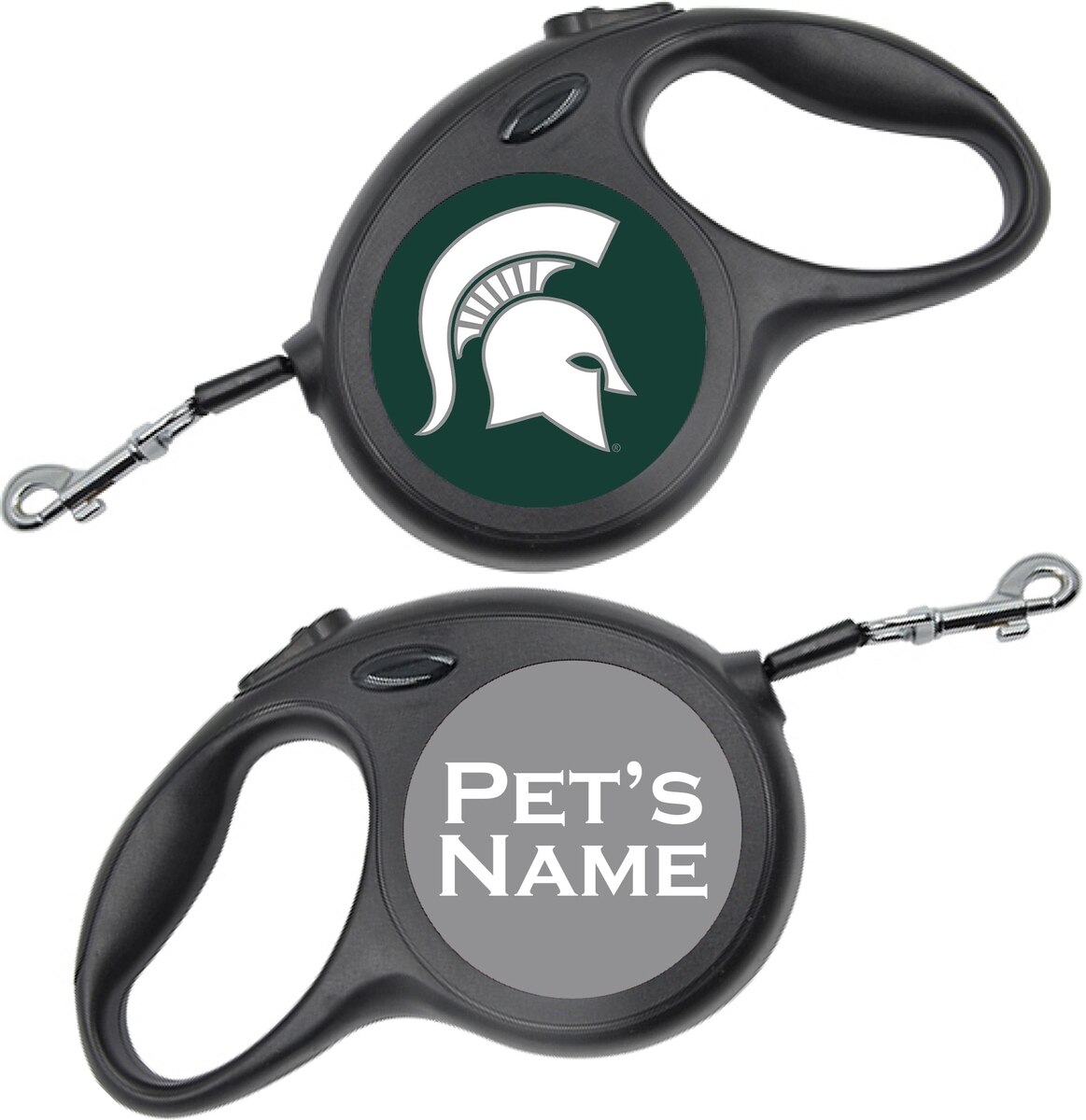 ShopInstaPets Michigan State Spartans Retractable Dog Walking Leash, Black, 16-ft long, 1/2-in wide