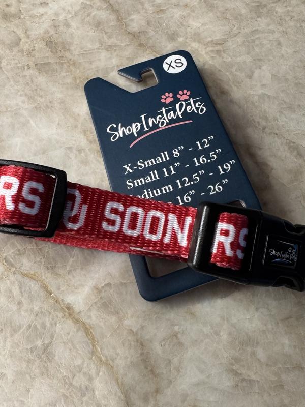 ShopInstaPets NCAA Polyester Standard Dog Collar, X-Small: 8 to 12-in neck, 1/2-in wide, Oklahoma Sooners