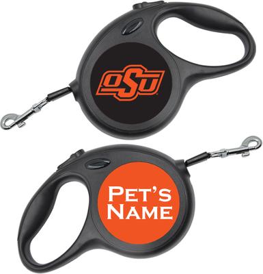 ShopInstaPets Oklahoma State Cowboys Retractable Dog Walking Leash, Black, 16-ft long, 1/2-in wide