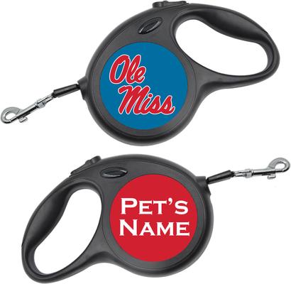ShopInstaPets Ole Miss Rebels Retractable Dog Walking Leash, Black, 16-ft long, 1/2-in wide