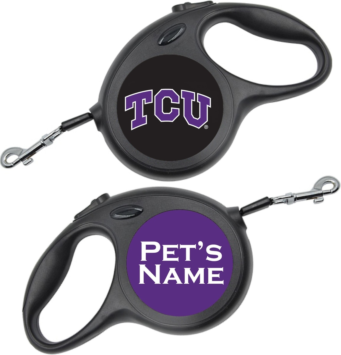 ShopInstaPets TCU Horned Frogs Retractable Dog Walking Leash, Black, 16-ft long, 1/2-in wide