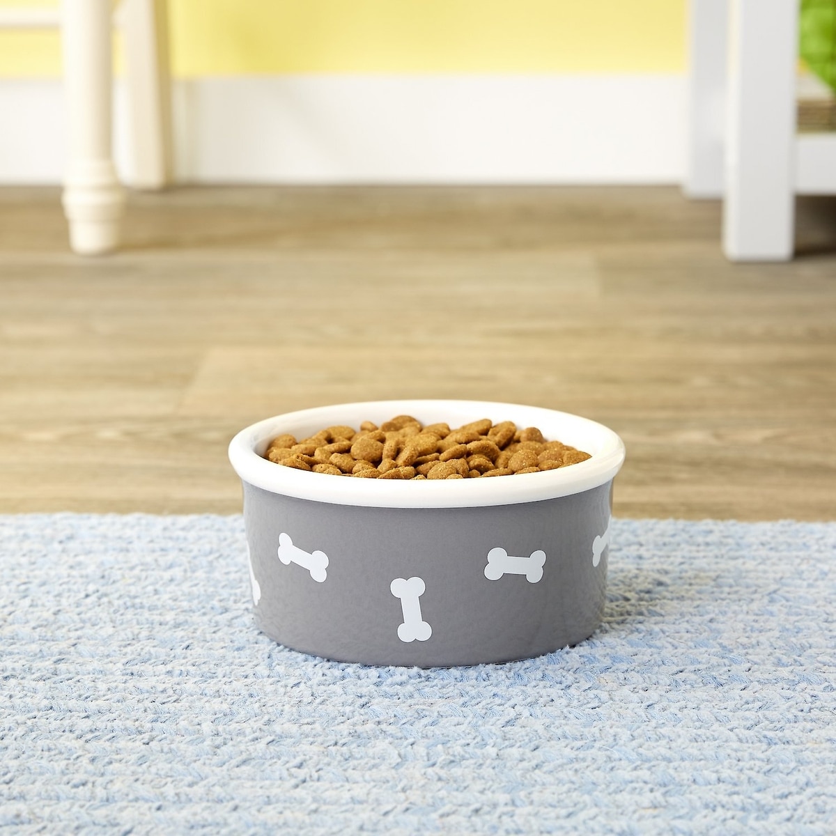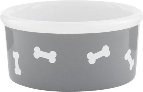 Signature Housewares Bones Non-Skid Ceramic Dog Bowl, Gray, 3-cup