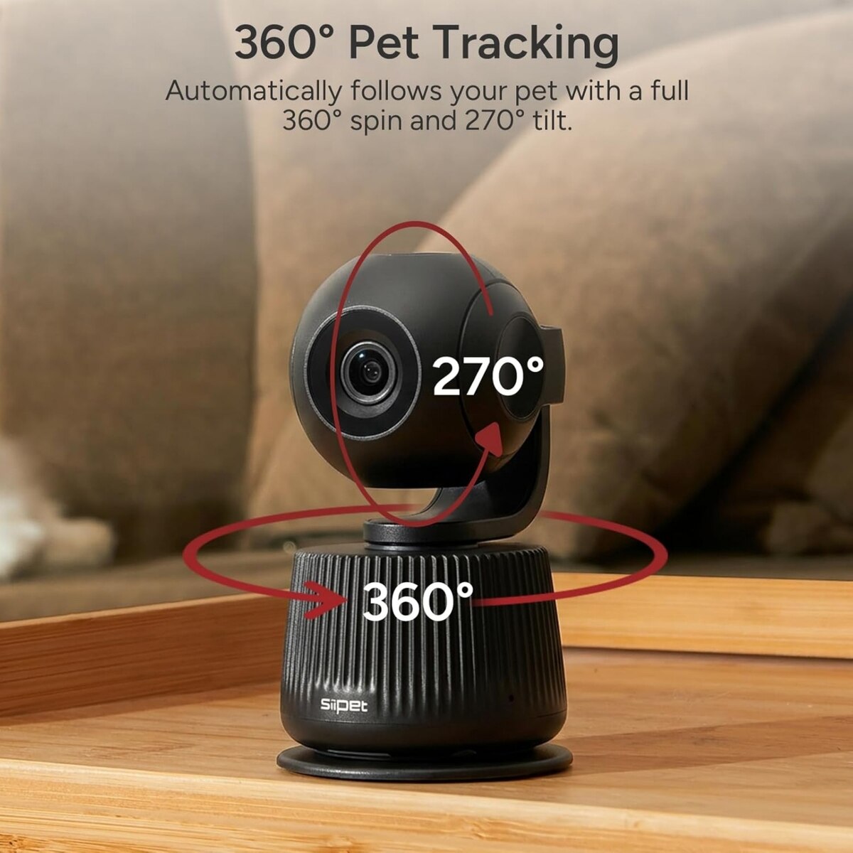 Automatically focuses on your furbaby with a full 360-degree spin and 270-degree tilt, ensuring you never miss a playful pounce, curious exploration, or cozy nap.